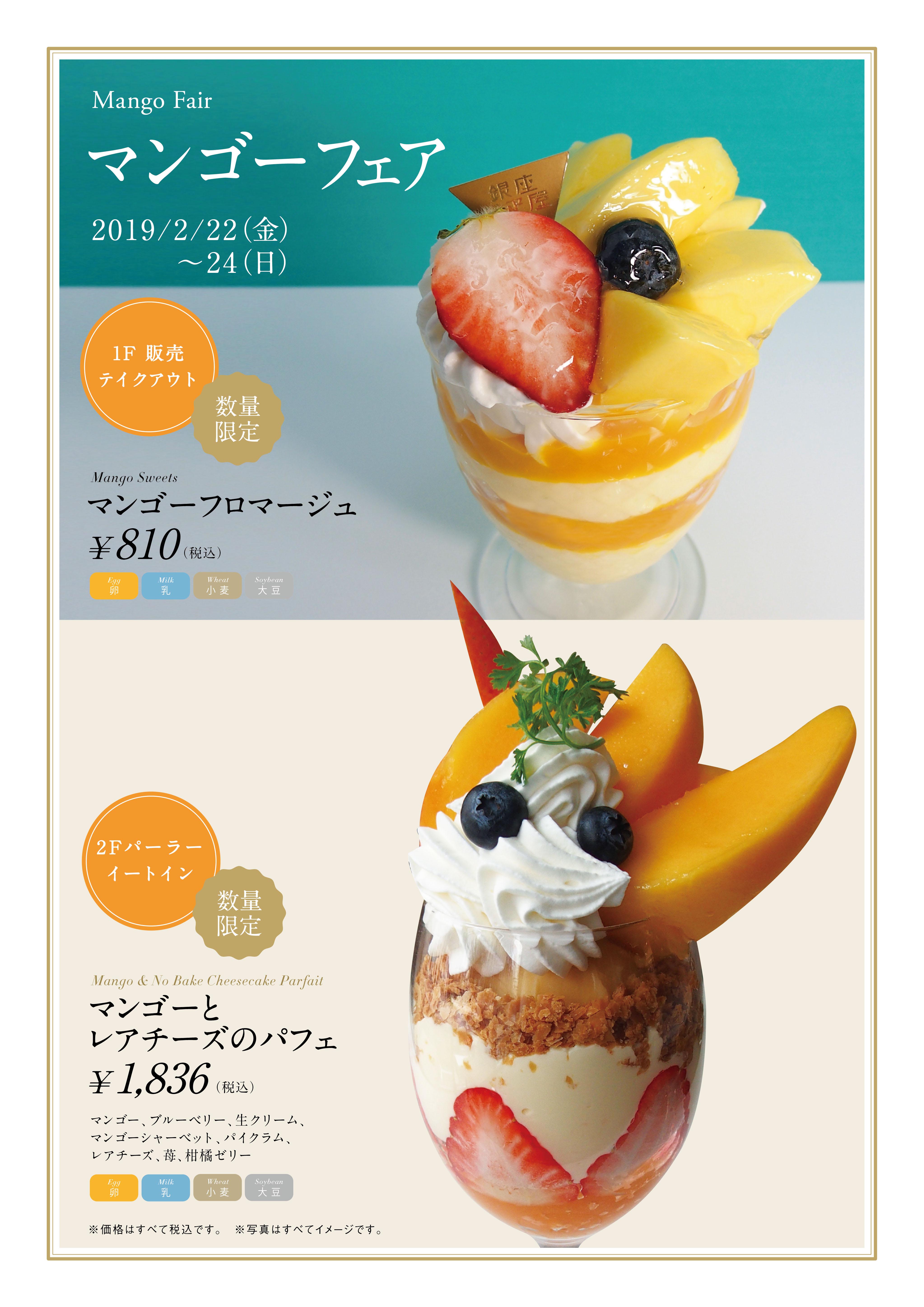 銀座千疋屋・パティスリー銀座千疋屋は、2月22日(金)〜2月24日(日)の期間にて、マンゴーフェアを開催いたします。