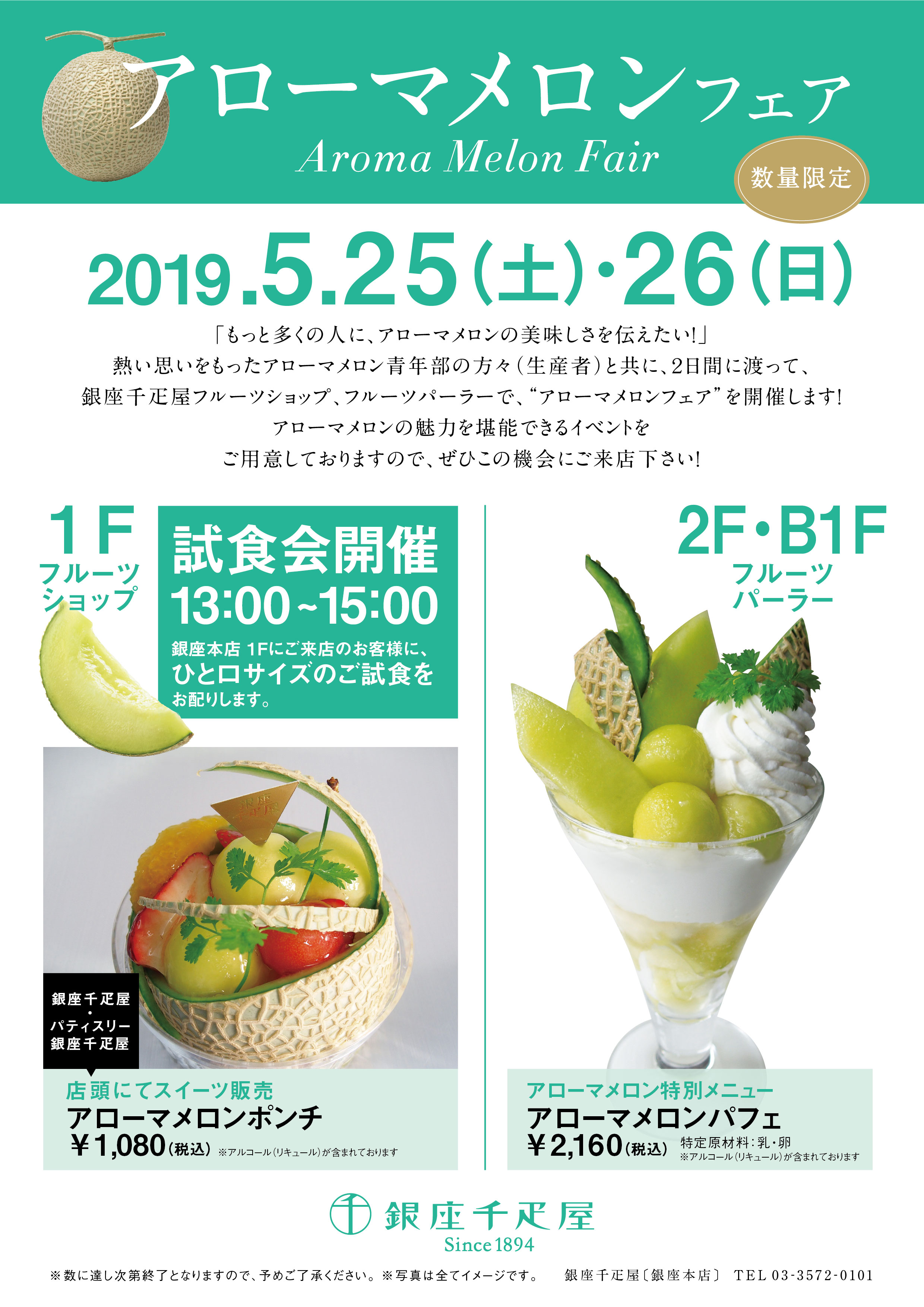 銀座千疋屋 銀座本店にて、2019年5月25日(土)・5月26日(日)の2日間に渡り、静岡県産 アローマメロンフェアを開催いたします。