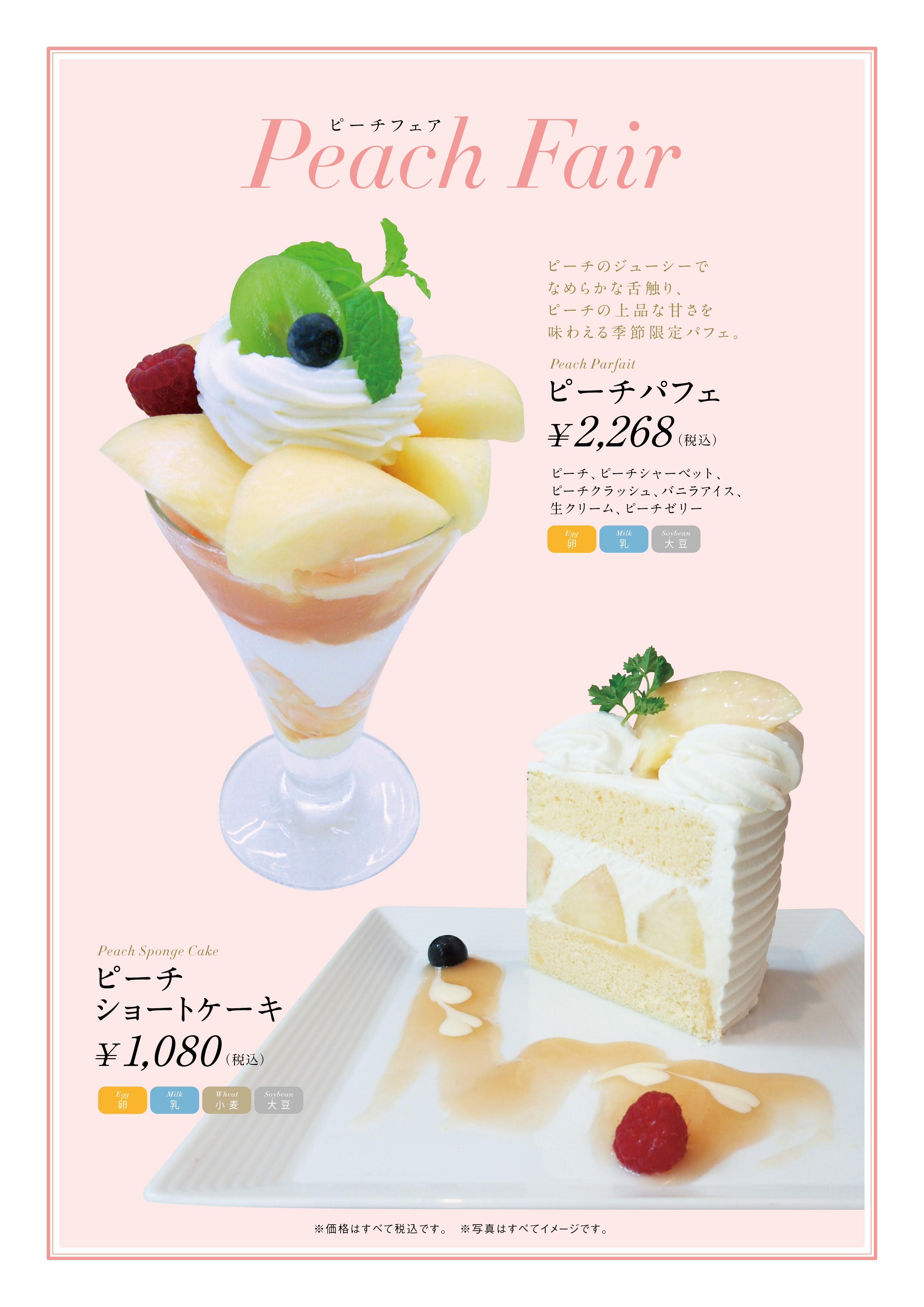 今年もジューシで、上品な甘みが広がるピーチをふんだんに使用したパフェとショートケーキをご用意いたしました。