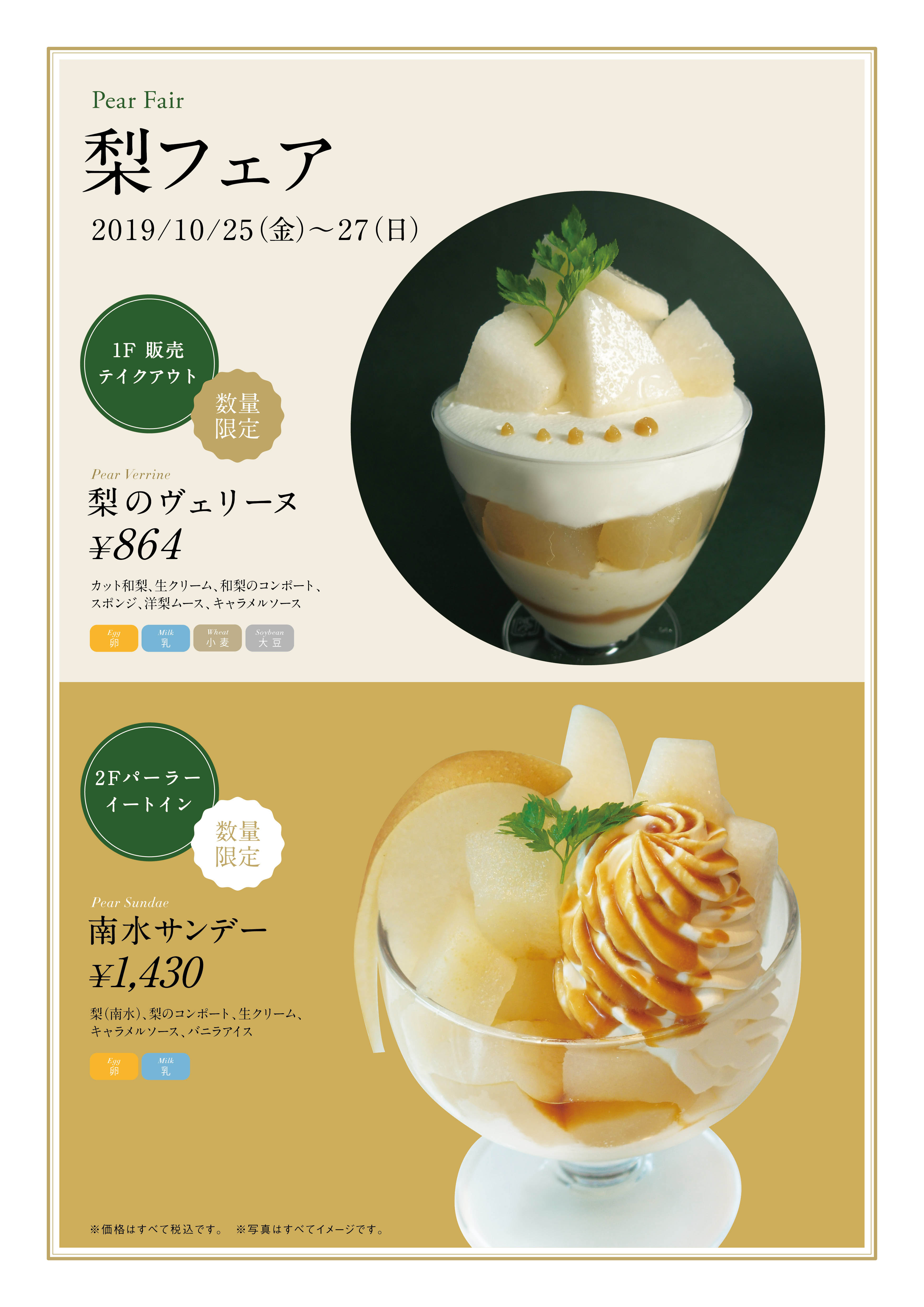 ・内容:梨(南水)、梨のコンポート、生クリーム、キャラメルソース、バニラアイス
