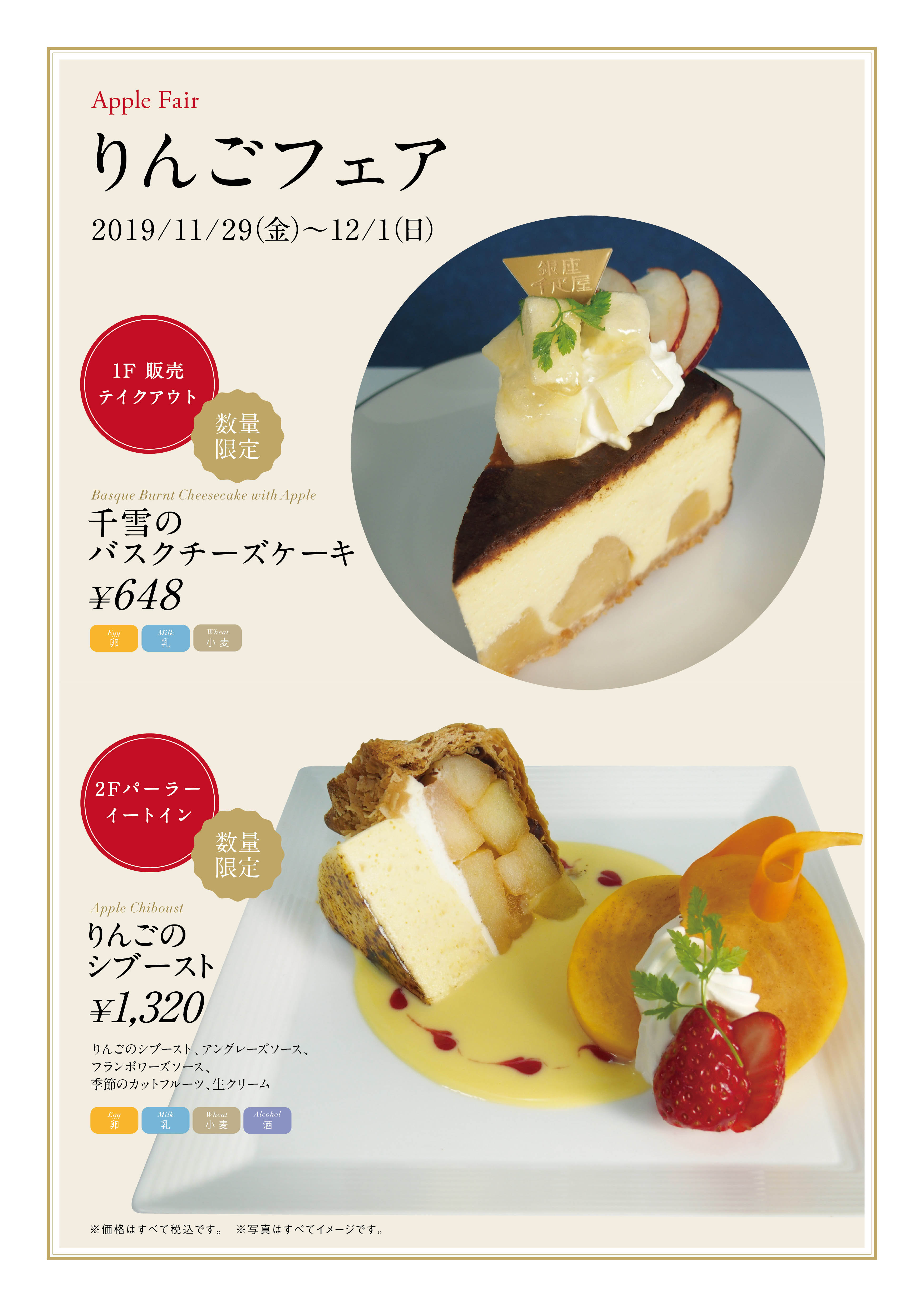 銀座千疋屋・パティスリー銀座千疋屋は、2020年11月29日(金)〜2020年12月1日(日)の期間限定にて、りんごを使用したスイーツを数量限定販売いたします。