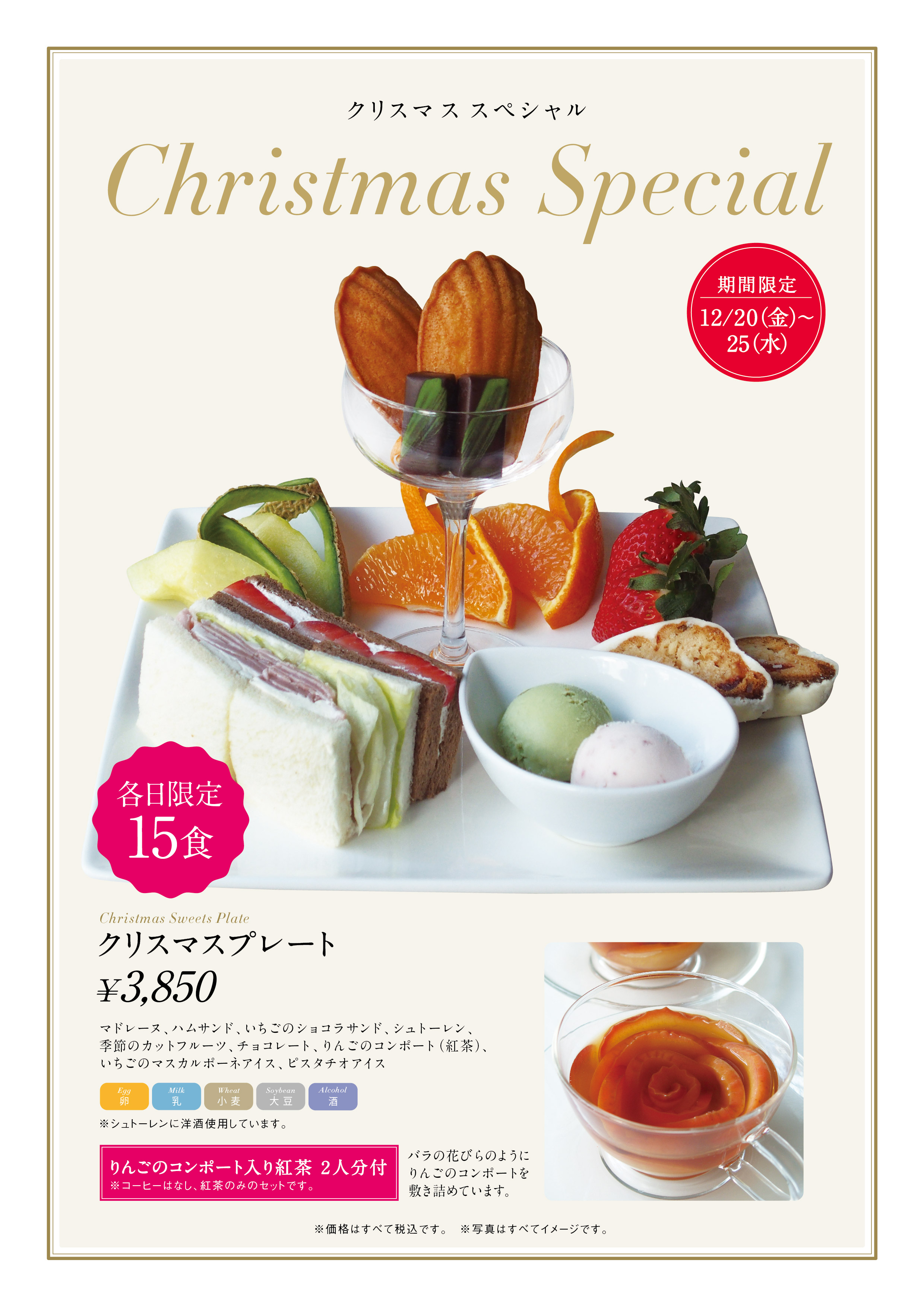 銀座本店 フルーツパーラーでは、12月20日(金)〜12月25日(水)の期間限定にて、「クリスマスプレート」を各日15セット販売いたします。