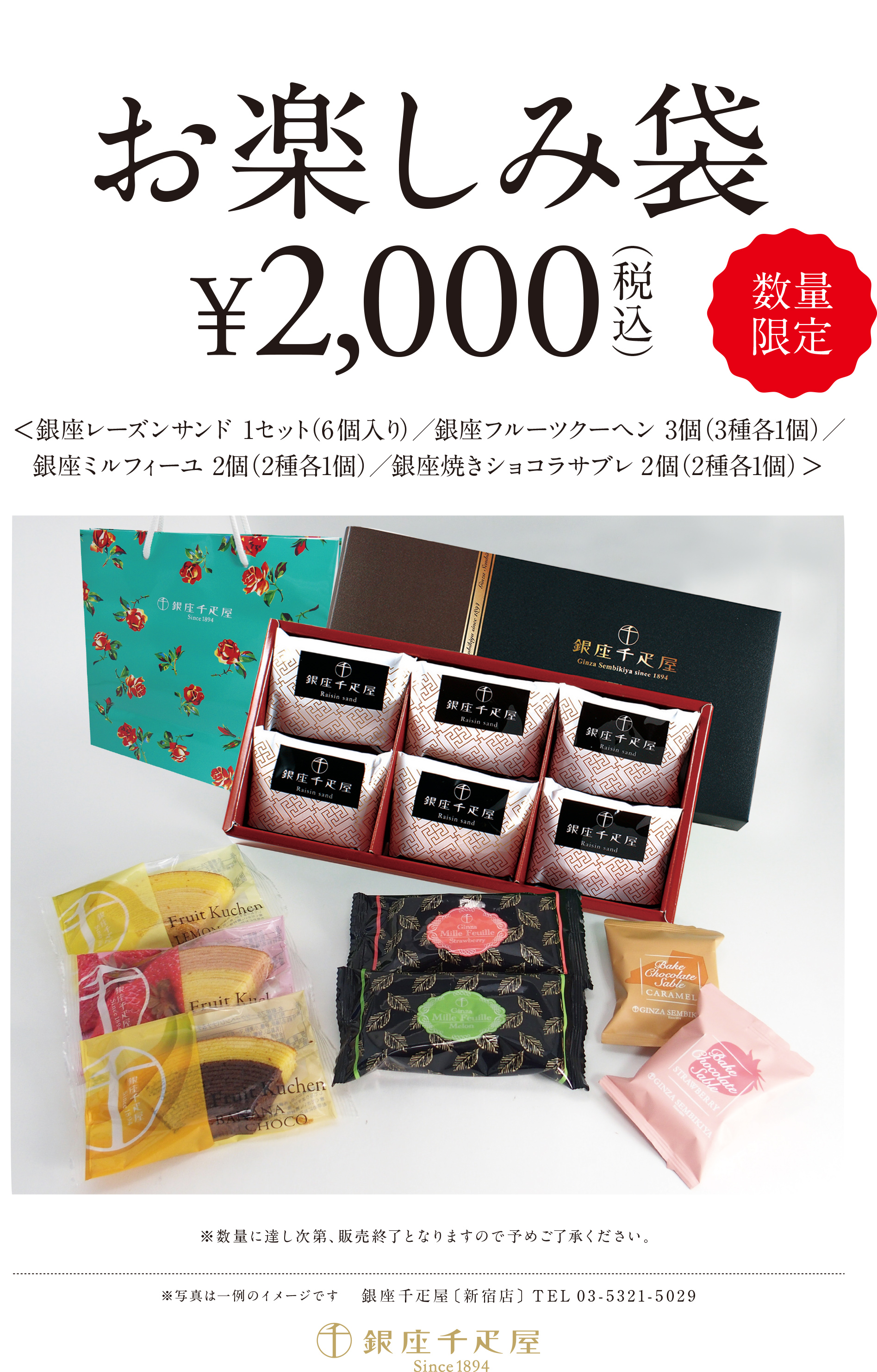銀座千疋屋 新宿店(京王百貨店・のれん街)は、2020年1月2日(木)より、数量限定にて「お楽しみ袋」を販売いたします。