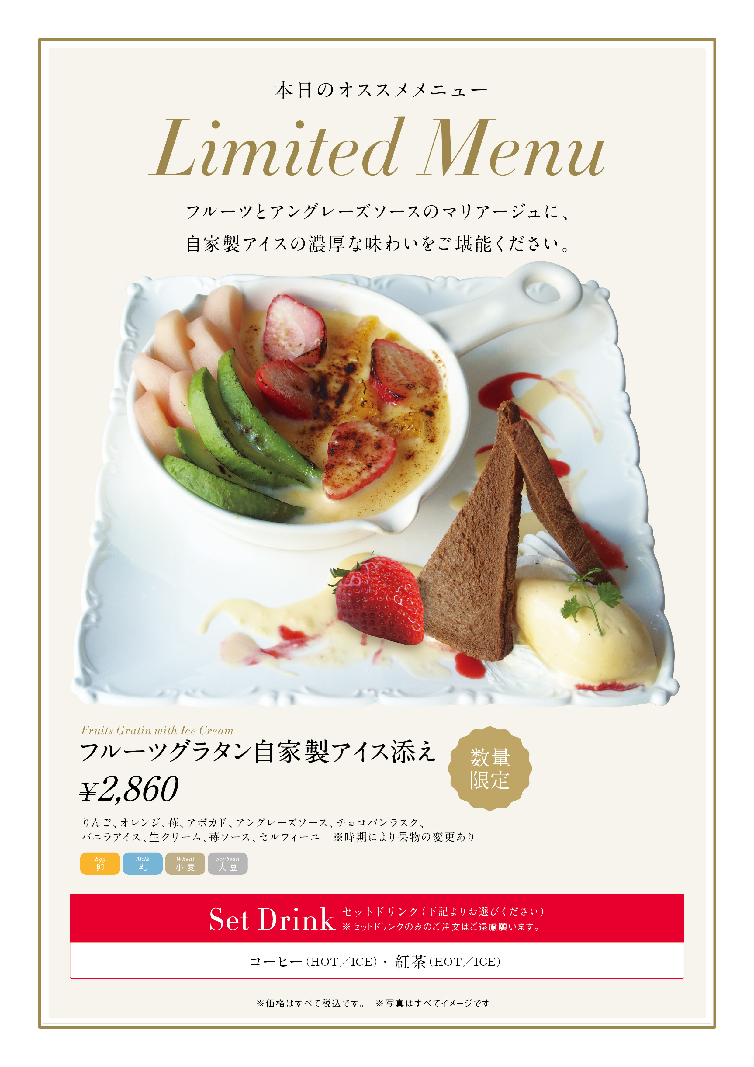 ・メニュー名:フルーツグラタン自家製アイス添え