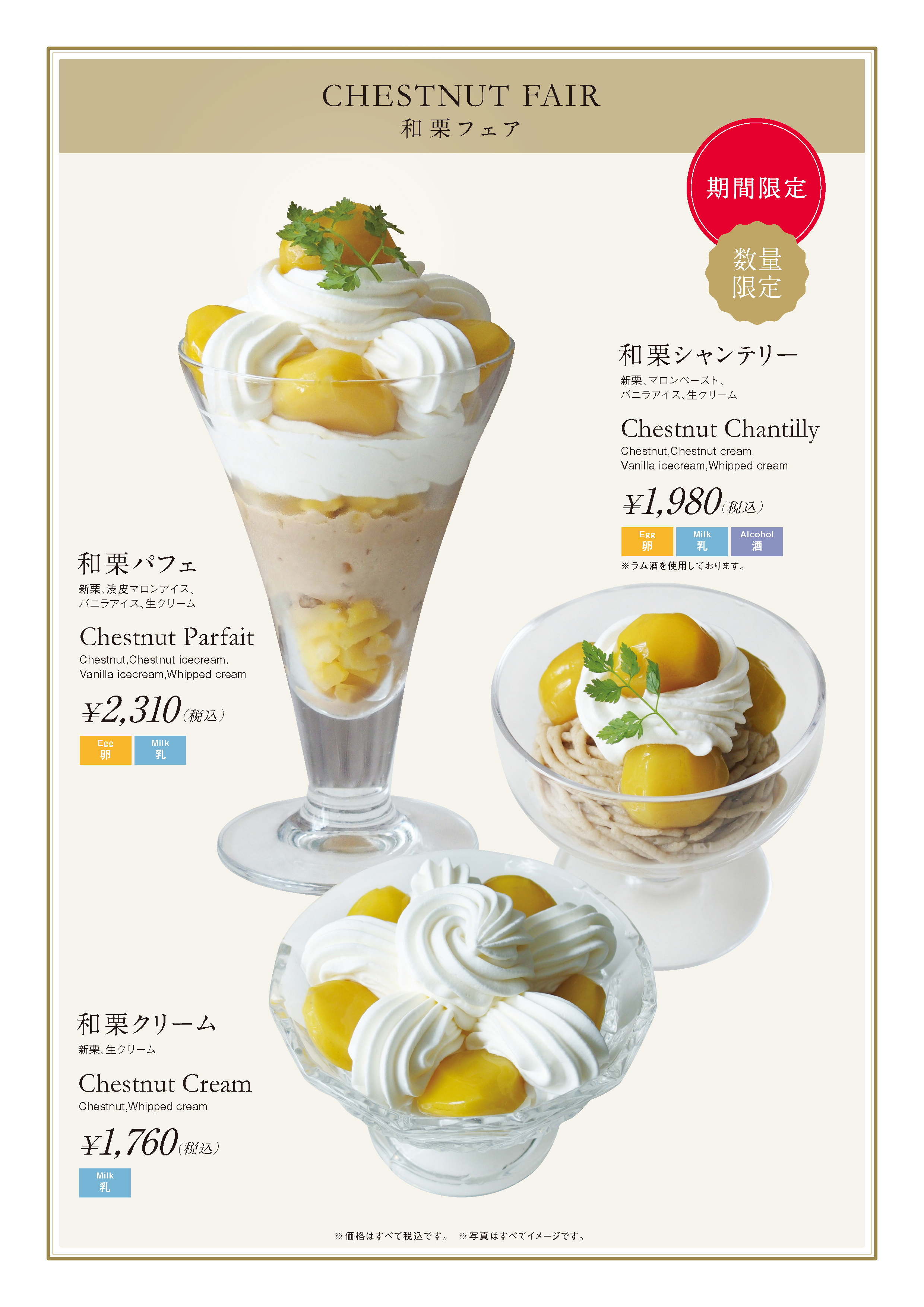 ・内容:新栗、マロンペースト、バニラアイス、生クリーム