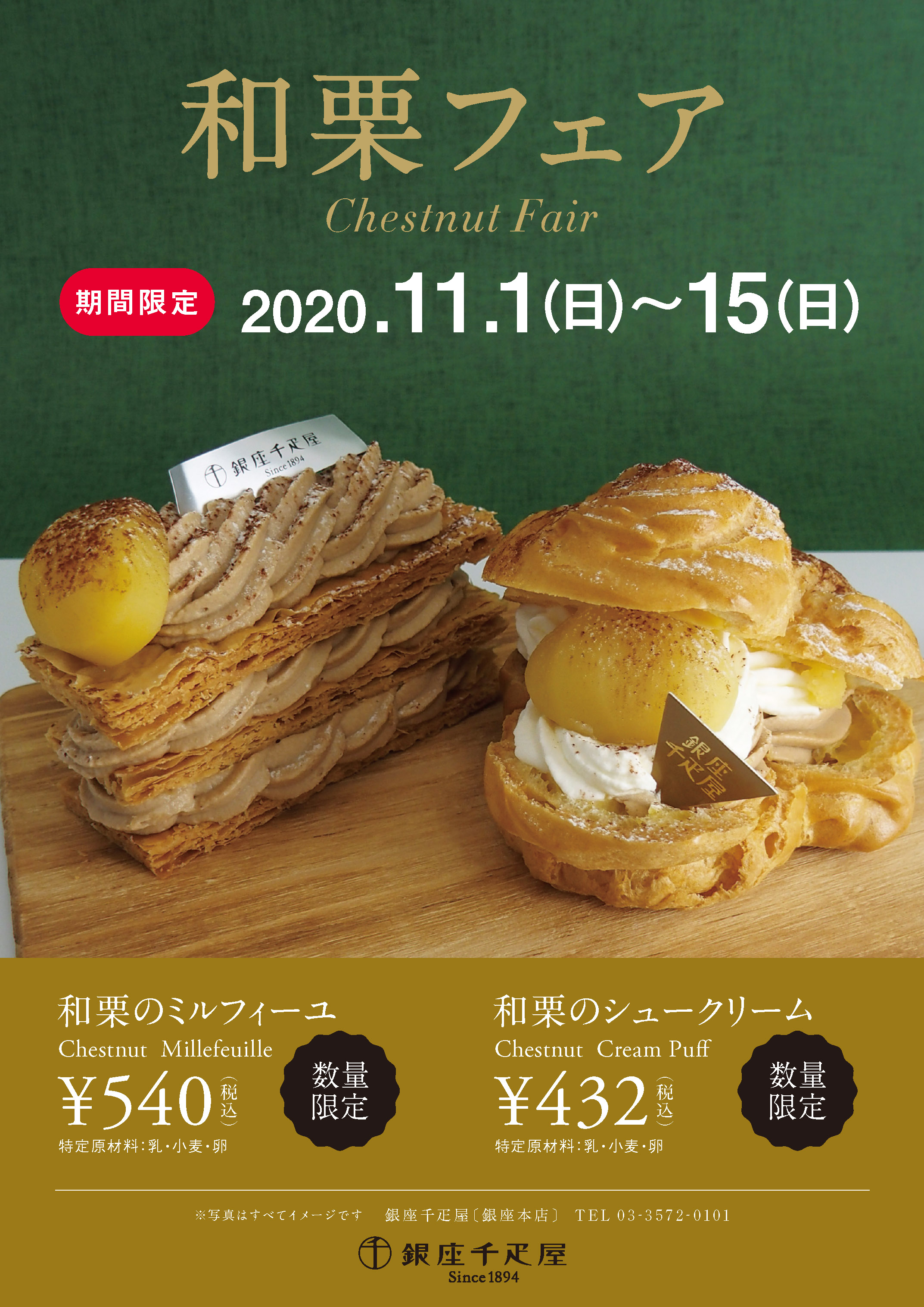 銀座千疋屋・パティスリー銀座千疋屋では、2020年11月1日(日)〜2020年11月15日(日)にて"和栗フェア"を開催いたします。