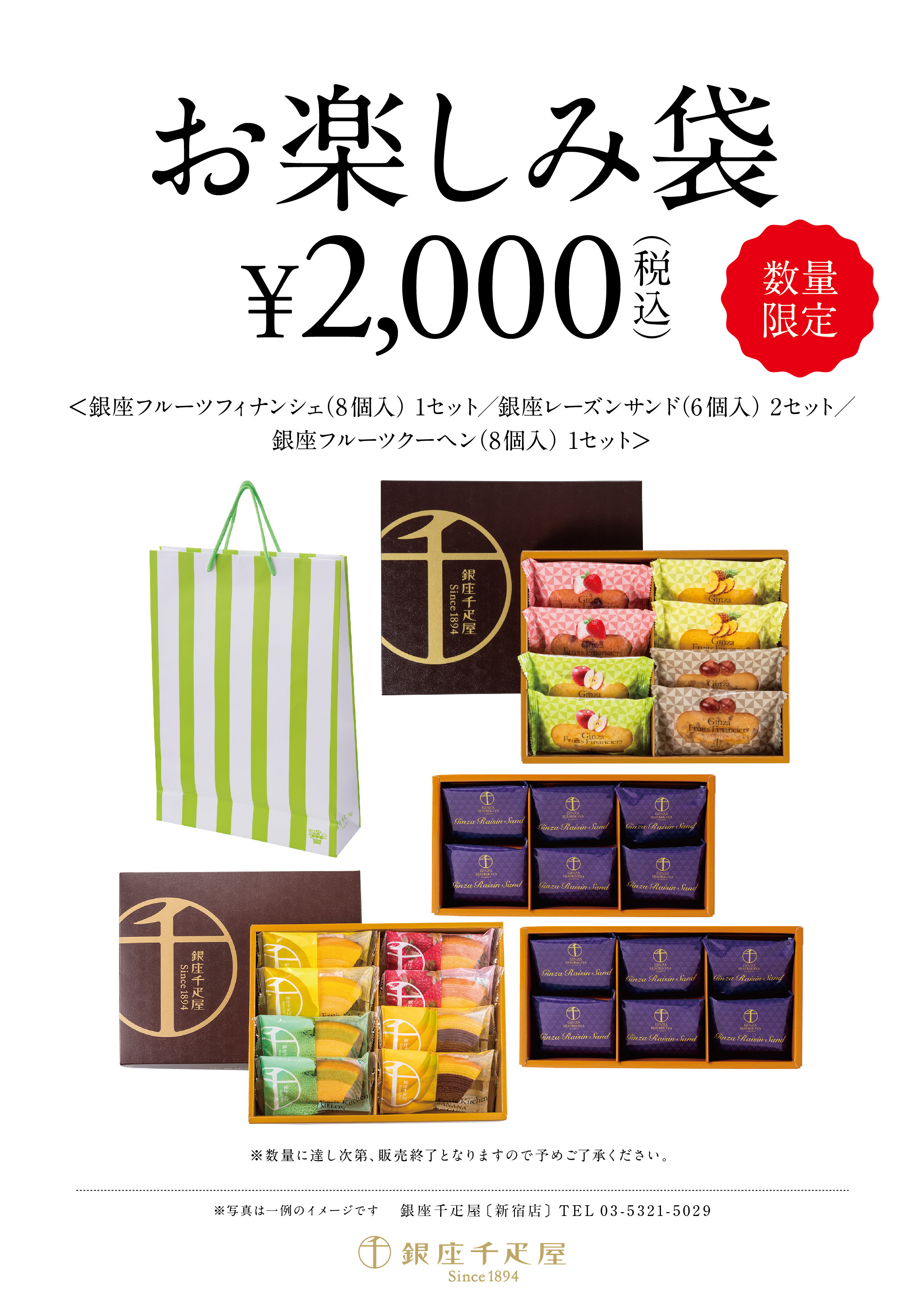 銀座千疋屋 新宿店(京王百貨店・のれん街)は、2021年1月2日(土)より、数量限定にて”お楽しみ袋”を販売いたします。