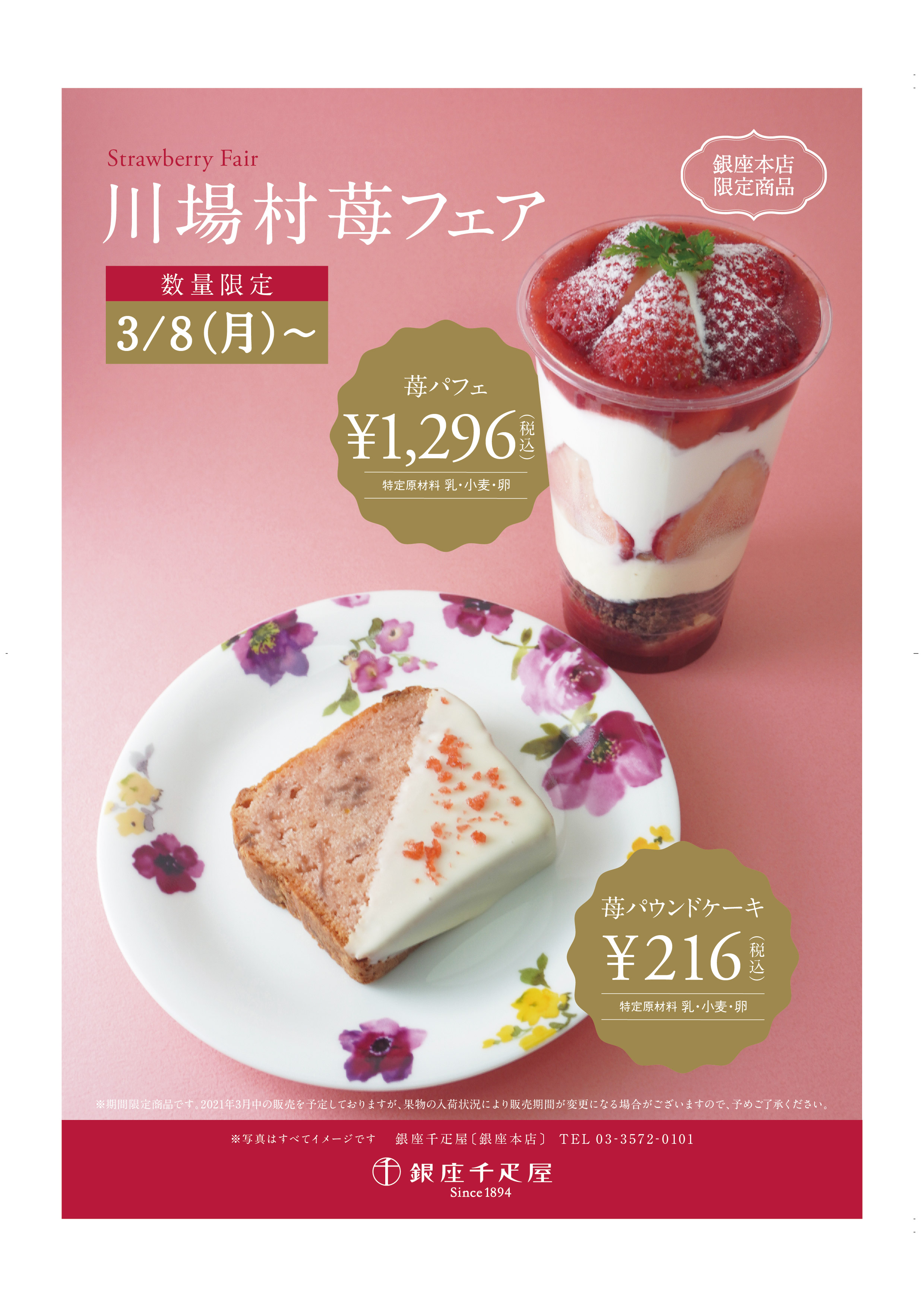 銀座千疋屋・パティスリー銀座千疋屋では、2021年3月8日(月)〜2021年3月31日(日)にて“川場村 苺フェア”を開催いたします。