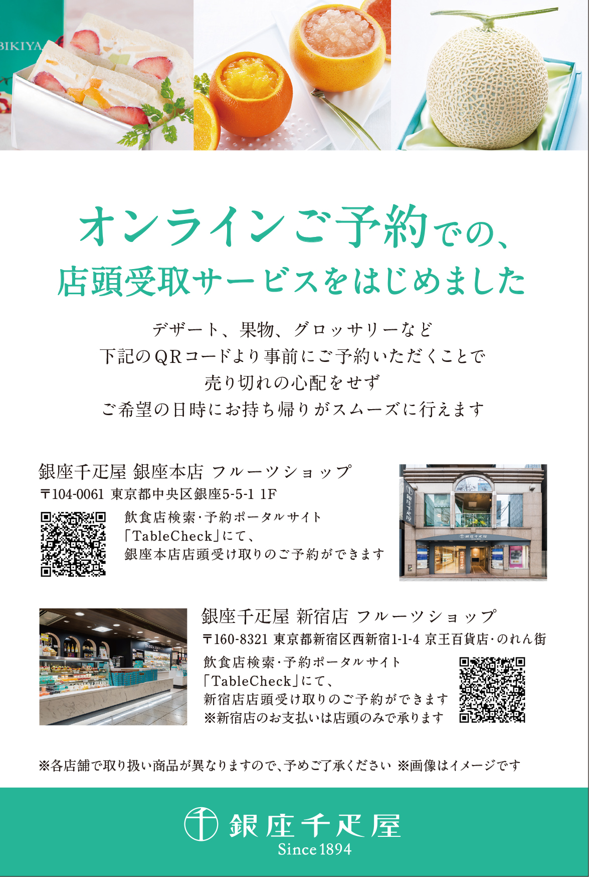 《銀座千疋屋 各店舗》オンライン予約 店頭受取サービス開始