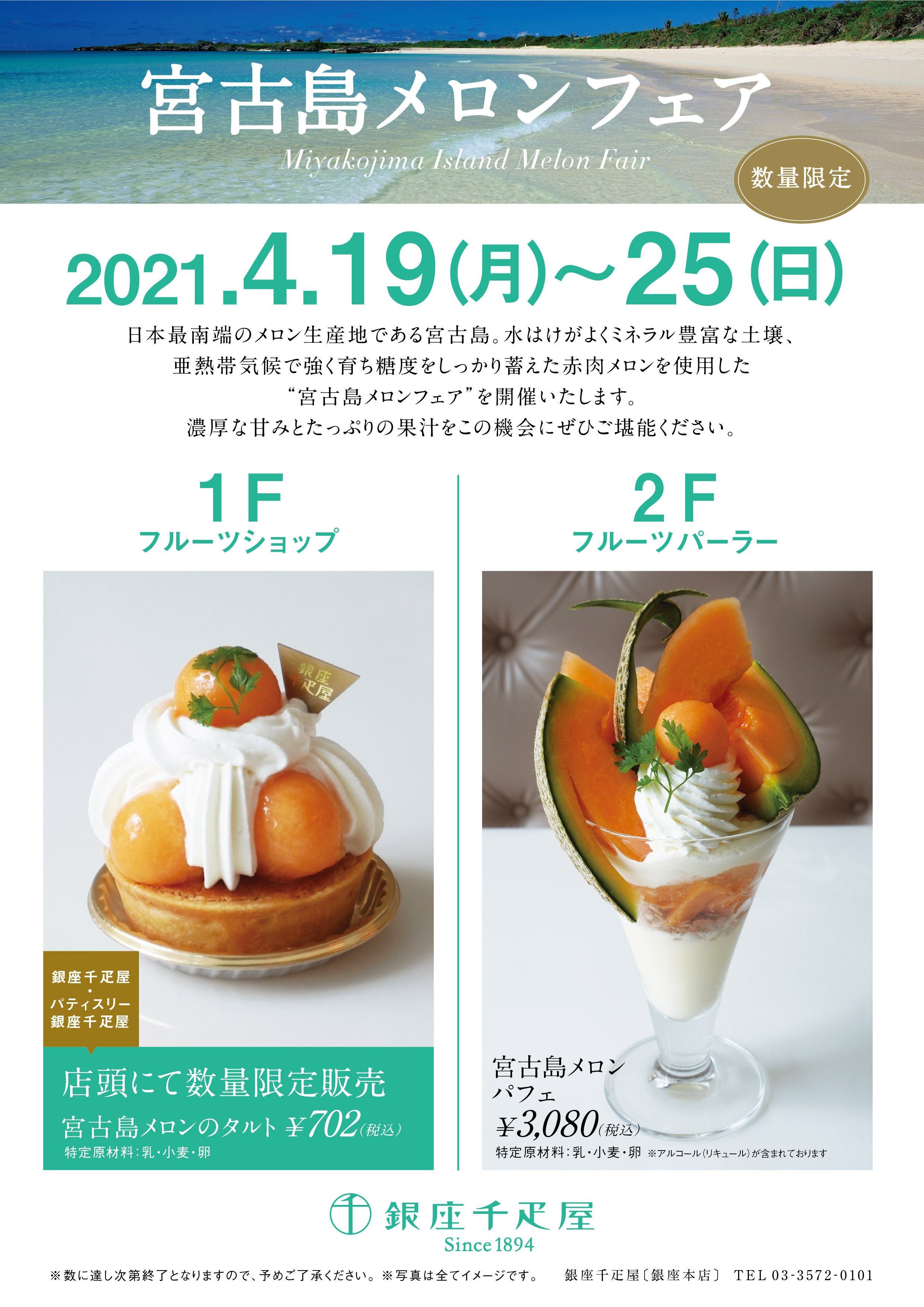 銀座千疋屋・パティスリー銀座千疋屋では、2021年4月19日(月)〜2021年4月25日(日)の期間にて、沖縄県“宮古島メロンフェア”を開催いたします。