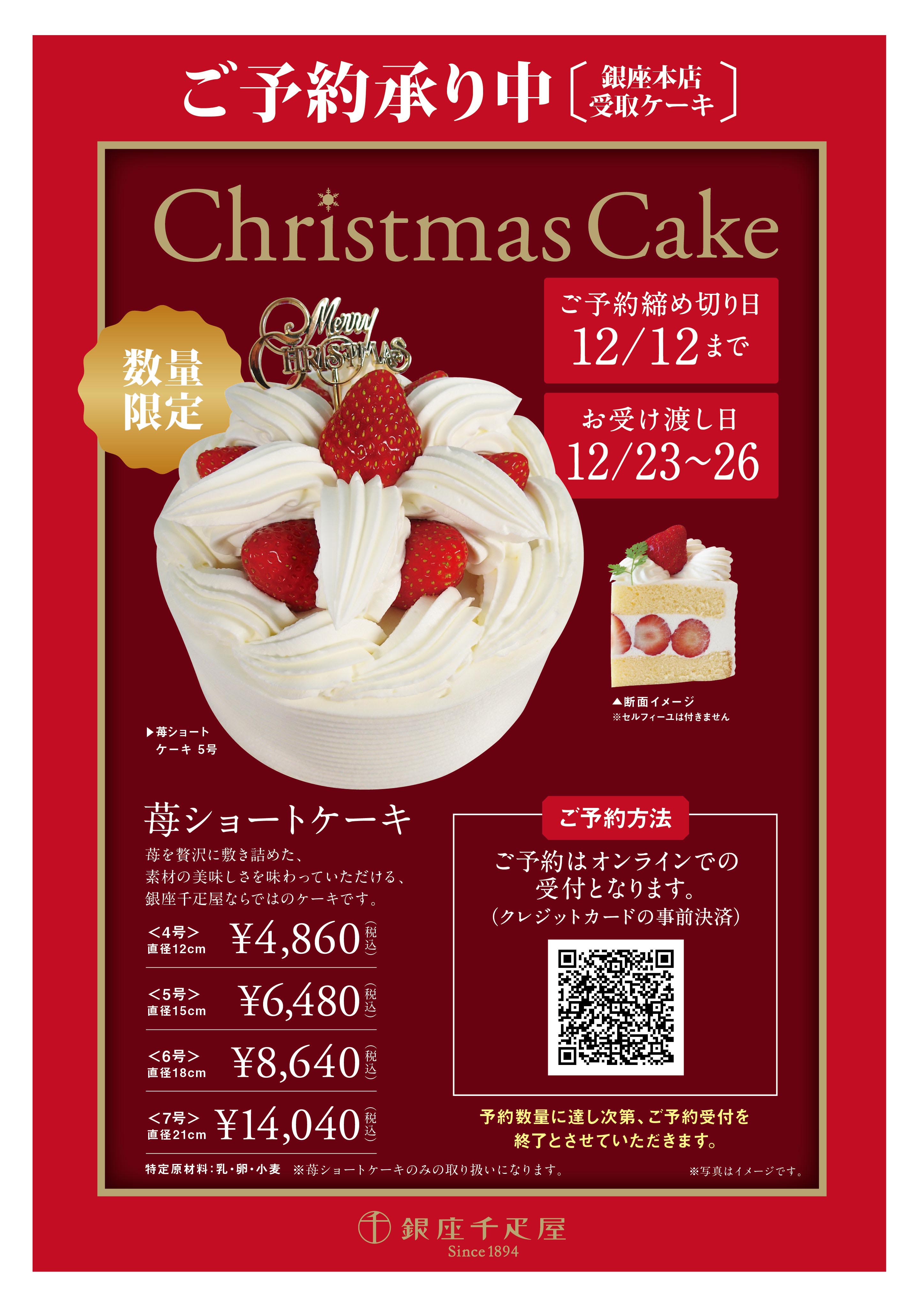 銀座千疋屋・パティスリー銀座千疋屋 各店舗では、クリスマスケーキの予約受付中です。
