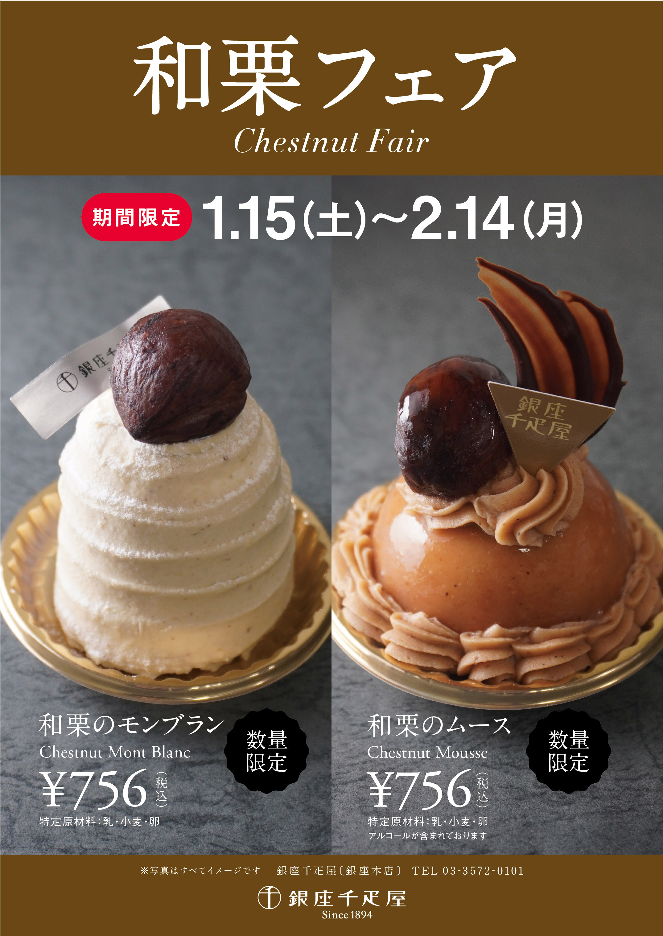 銀座千疋屋・パティスリー銀座千疋屋では、2022年1月15日(土)〜2022年2月14日(月)の期間にて、"和栗フェア"を開催いたします。