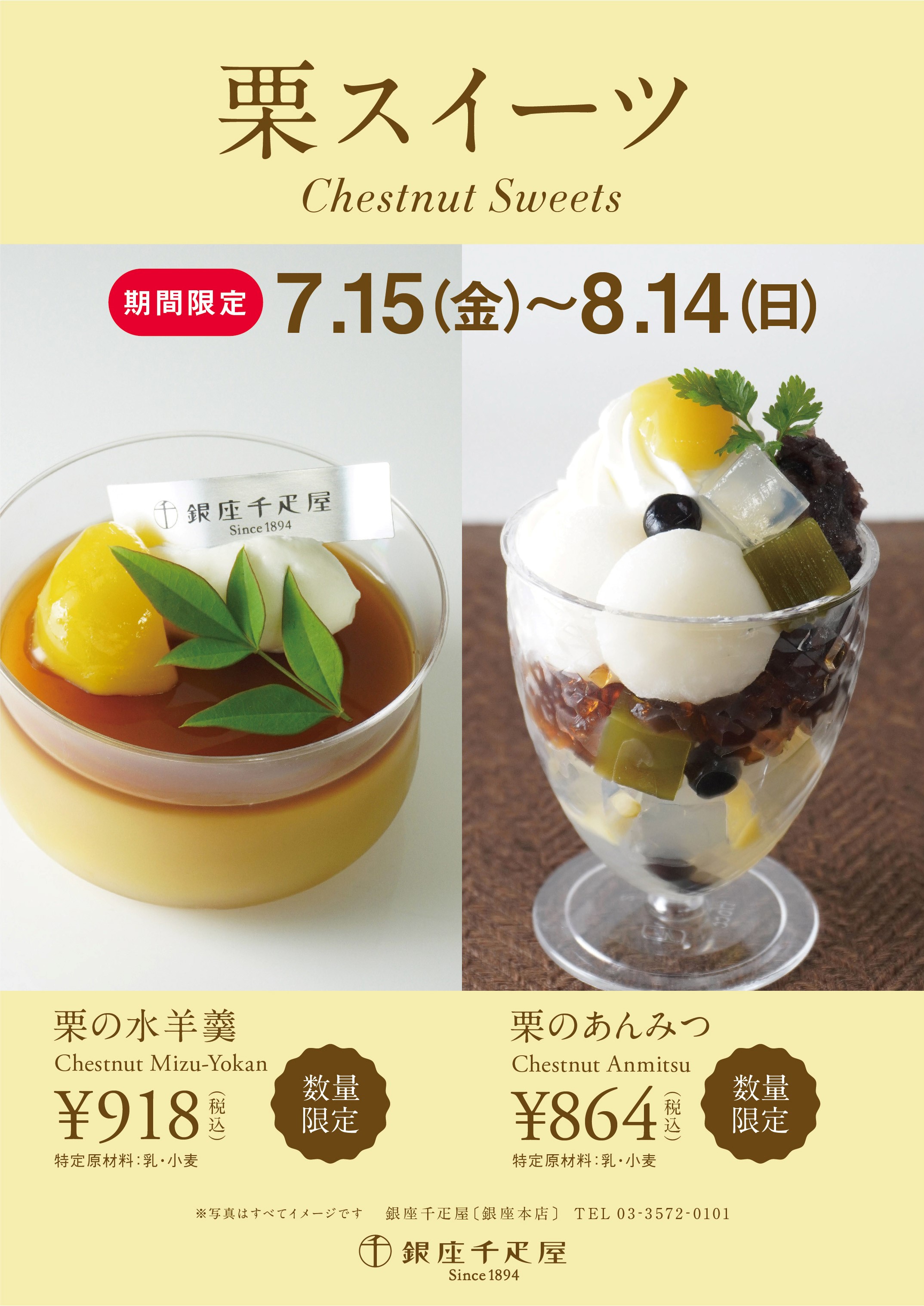 夏の和スイーツ「栗の水羊羹」・「栗のあんみつ」を数量限定でご用意いたしました。
