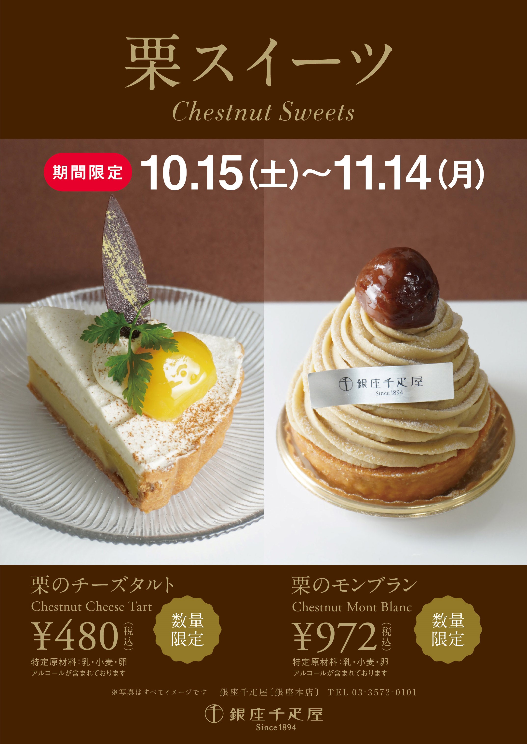 ※エキュート赤羽店では、「栗のチーズタルト」のみの販売となります。