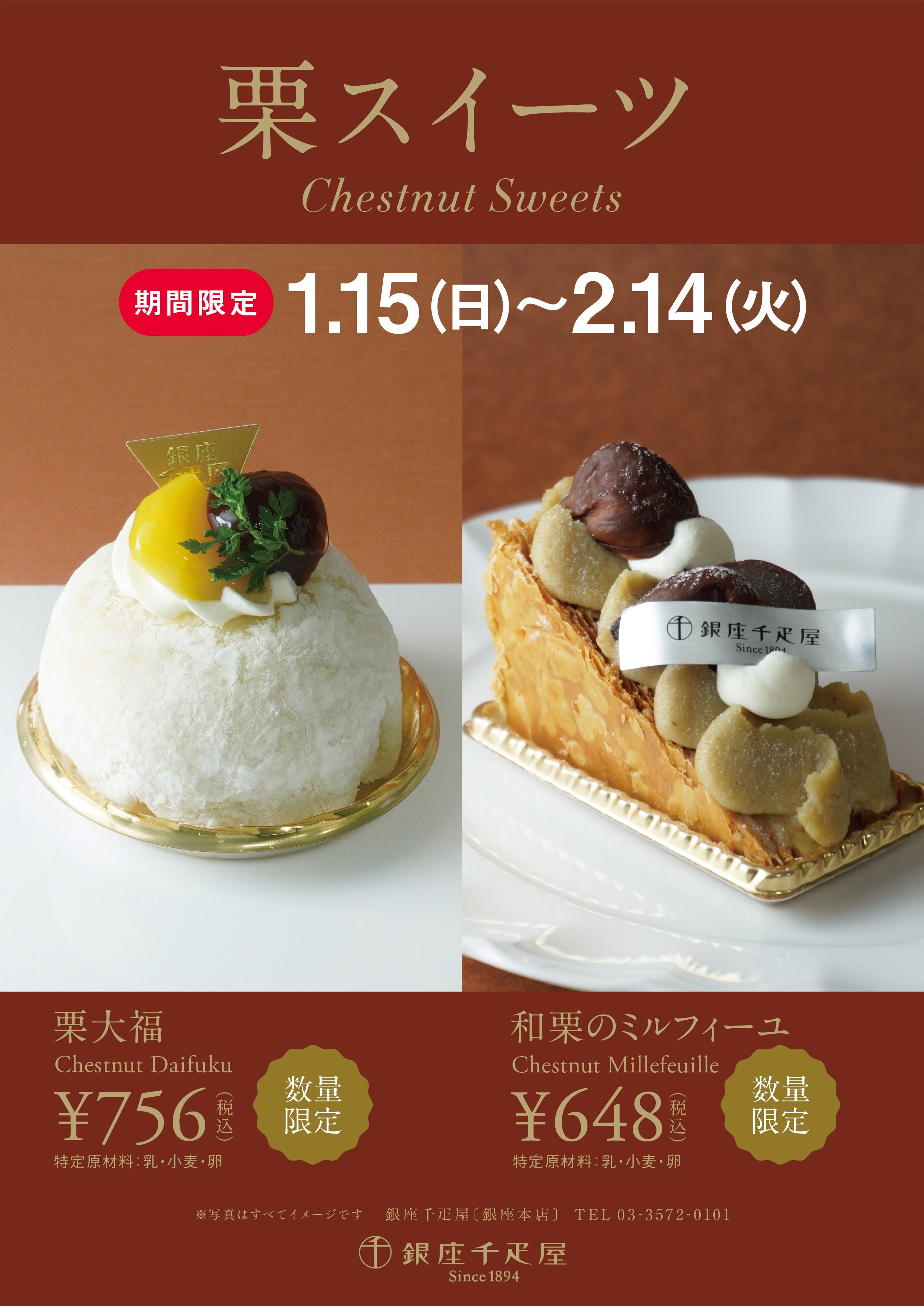 「栗大福」と「和栗ミルフィーユ」を数量限定でご用意しました。