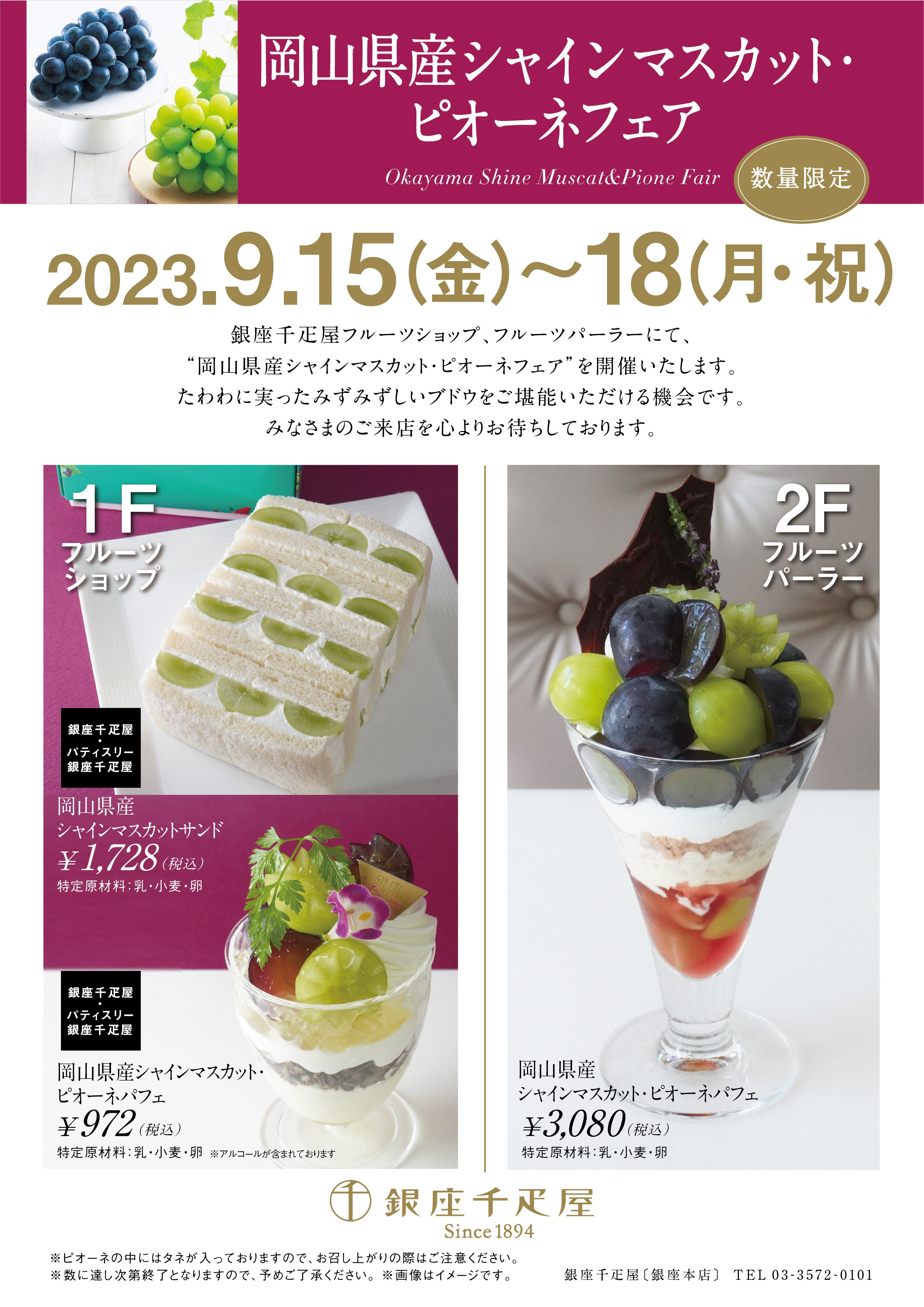 ≪銀座千疋屋 各店舗≫ “岡山県産シャインマスカット・ピオーネフェア”開催