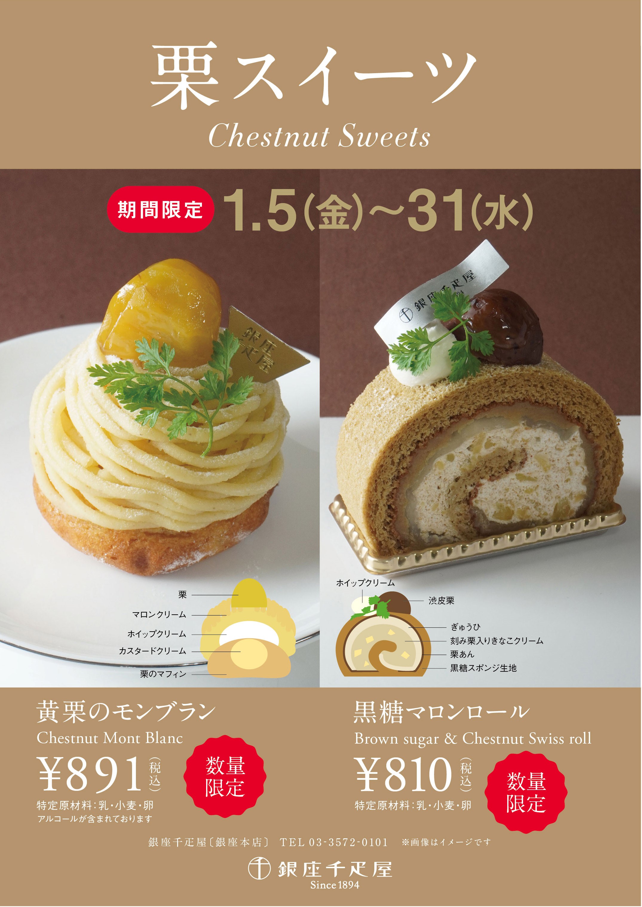 銀座千疋屋・パティスリー銀座千疋屋では、2024年1月5日(金)~2024年1月31日(水)の期間にて、“栗スイーツフェア”を開催いたします。