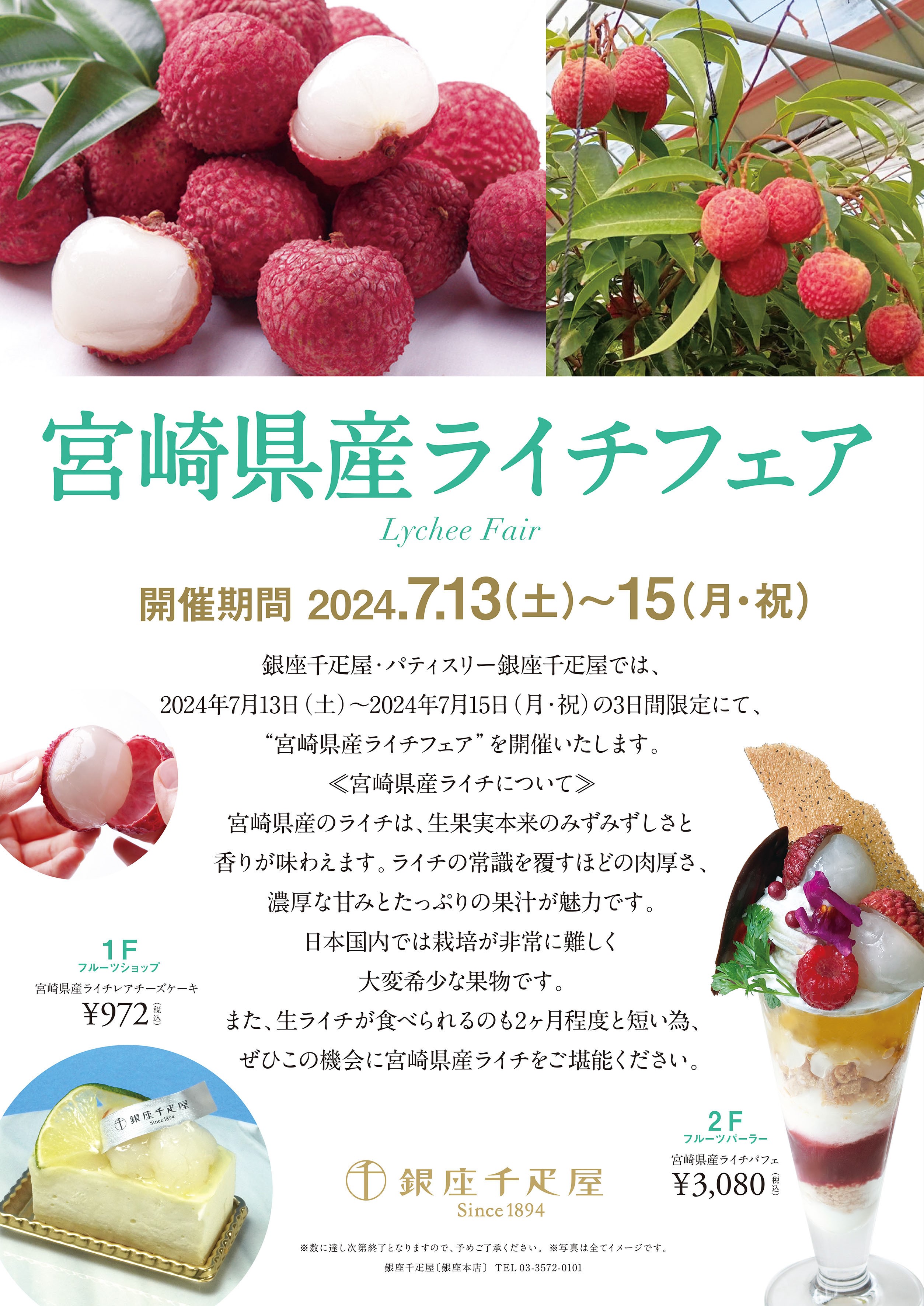 銀座千疋屋・パティスリー銀座千疋屋では、2024年7月13日(土)〜2024年7月15日(月・祝)の3日間限定にて、“宮崎県産ライチフェア”を開催いたします。