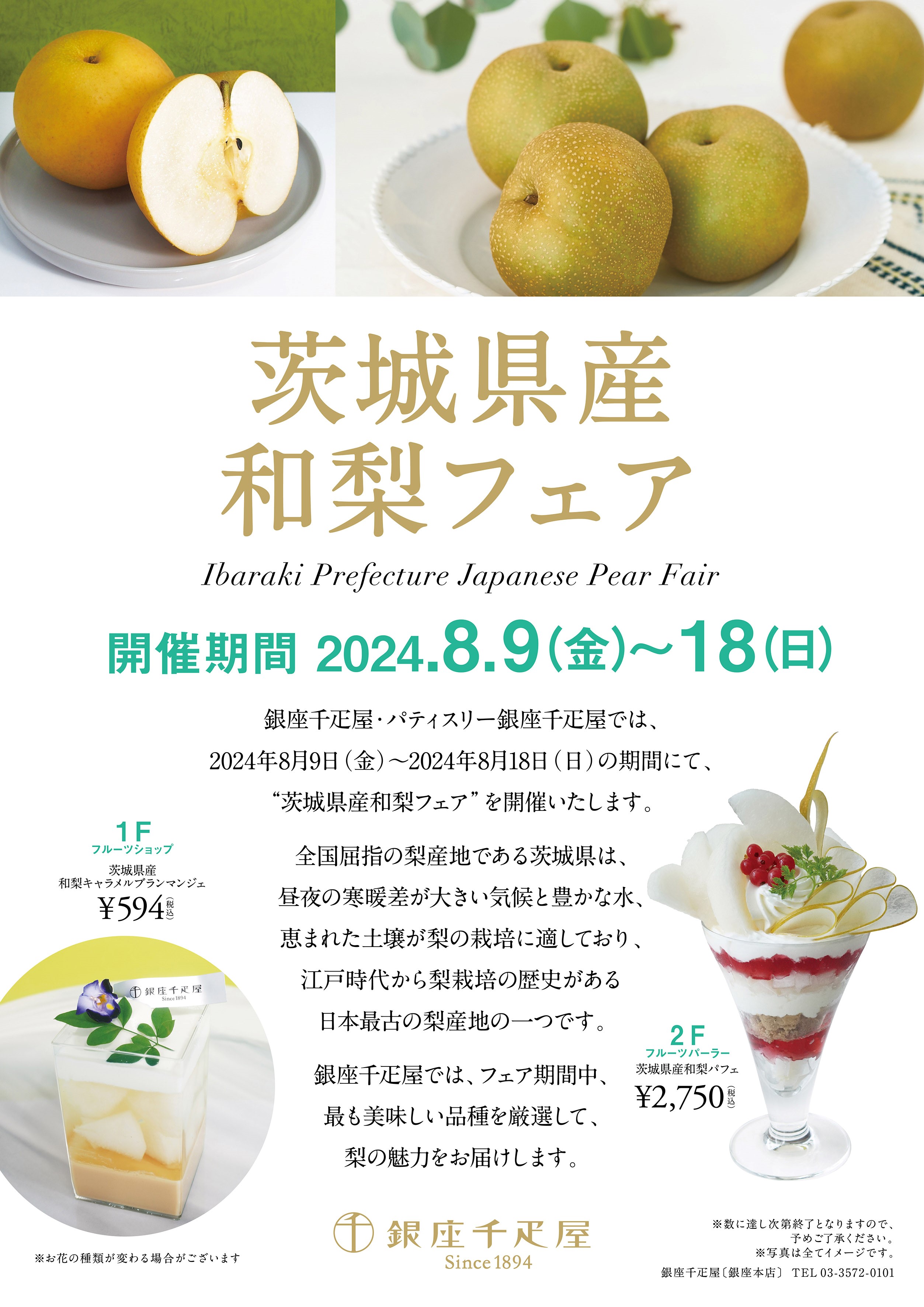 ≪銀座千疋屋 各店舗≫“茨城県産和梨フェア”開催
