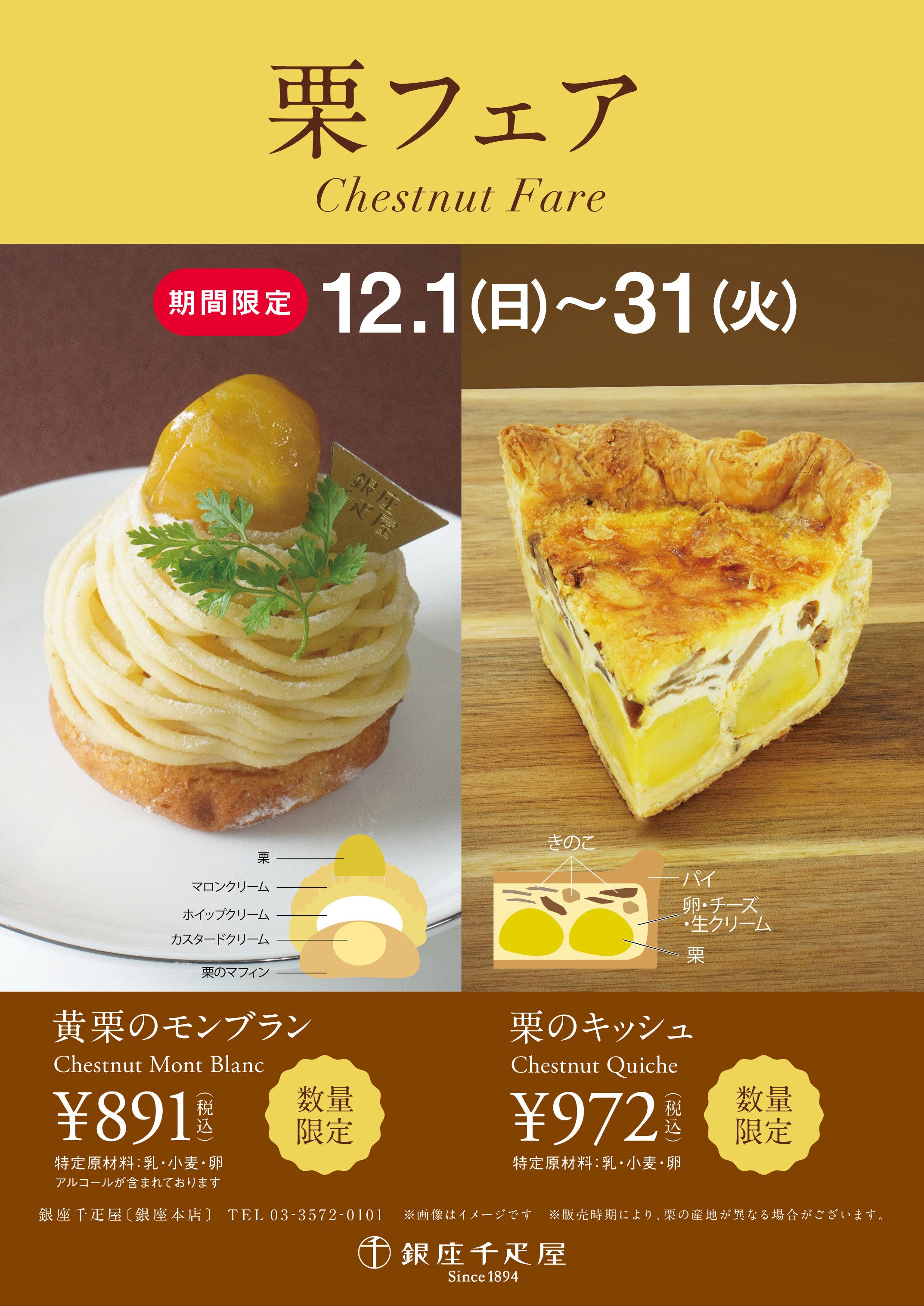 銀座千疋屋・パティスリー銀座千疋屋では、2024年12月1日(日)〜2024年12月31日(火)の期間にて、“栗フェア”を開催いたします。