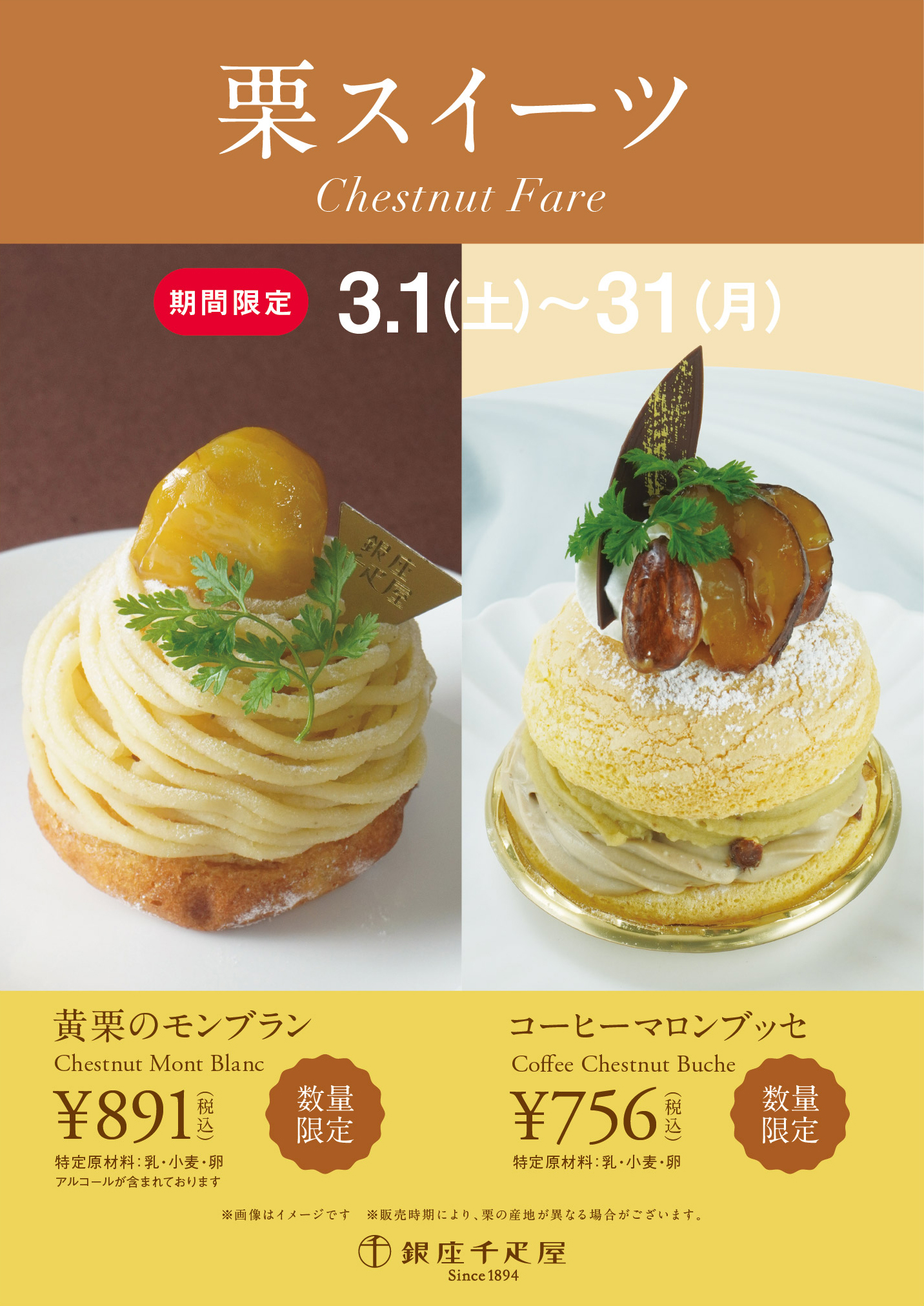 銀座千疋屋・パティスリー銀座千疋屋では、2025年3月1日(土)〜2025年3月31日(月)の期間にて、“栗スイーツフェア”を開催いたします。