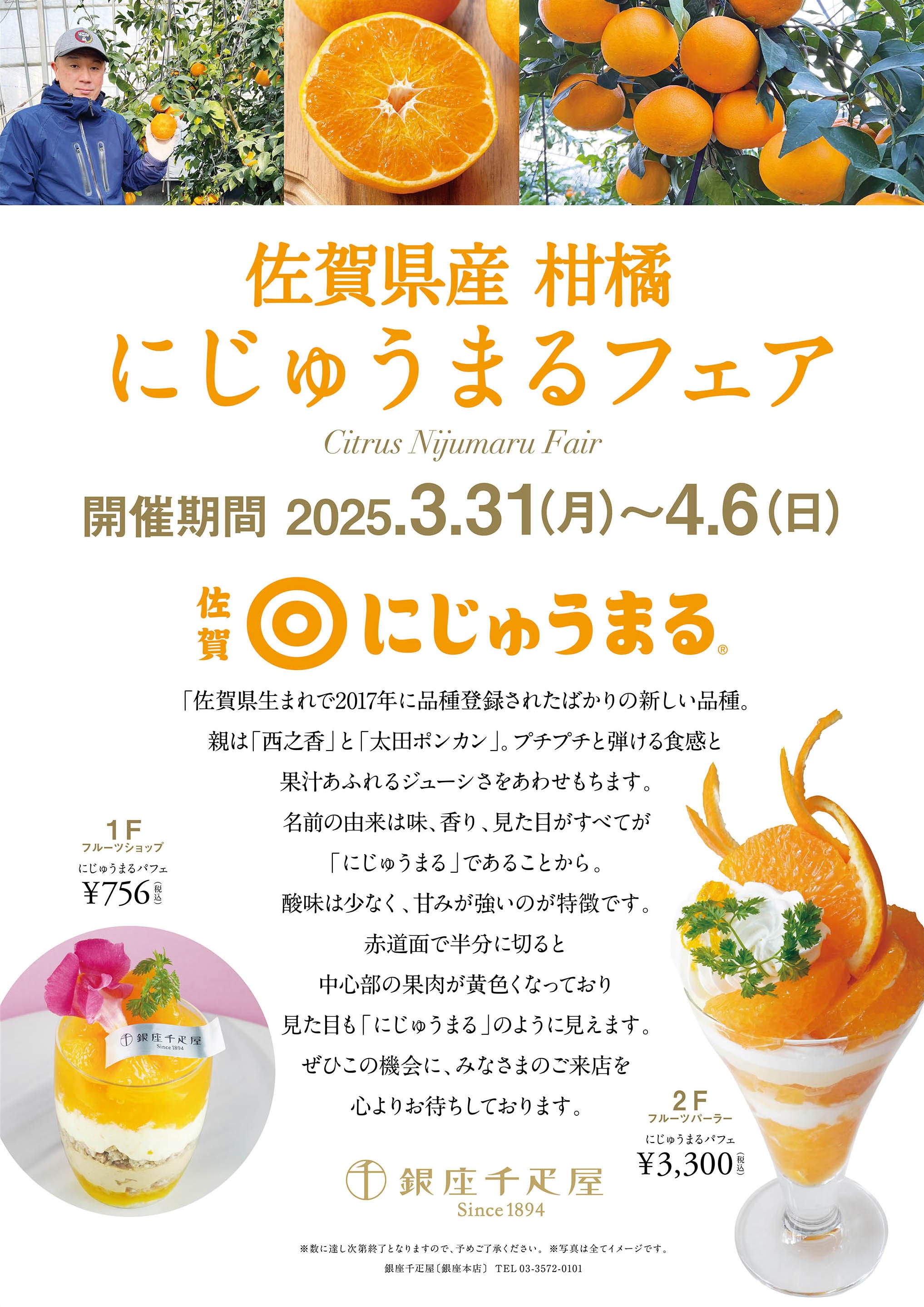 銀座千疋屋・パティスリー銀座千疋屋では、2025年3月31日(月)〜2025年4月6日(日)の期間限定にて、“佐賀県産柑橘にじゅうまるフェア”を開催します。