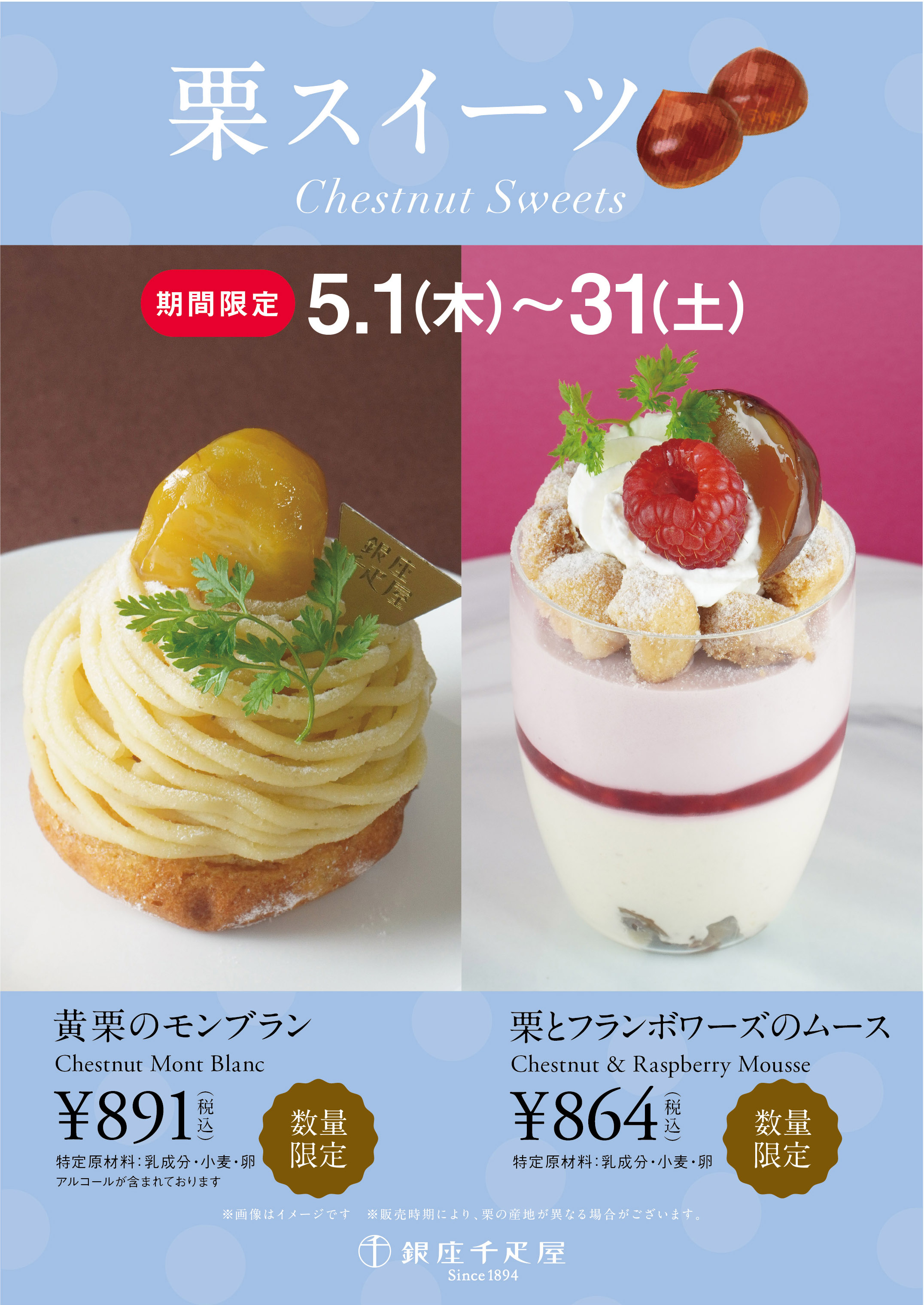 ≪銀座千疋屋 各店舗≫ “5月の栗スイーツ”登場