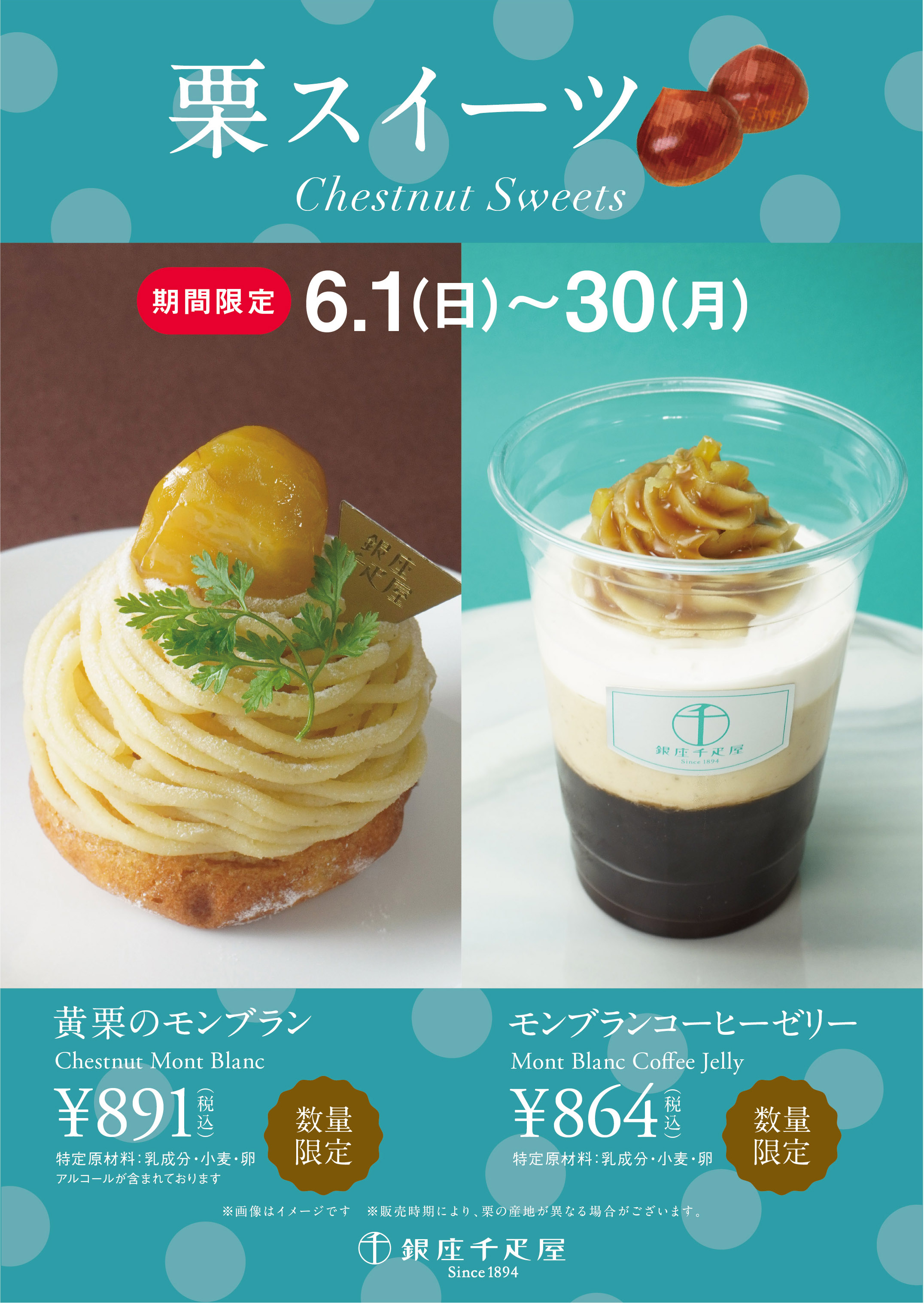 銀座千疋屋・パティスリー銀座千疋屋では、2025年6月1日(日)~2025年6月30日(月)の期間にて、“栗スイーツ”を発売します。