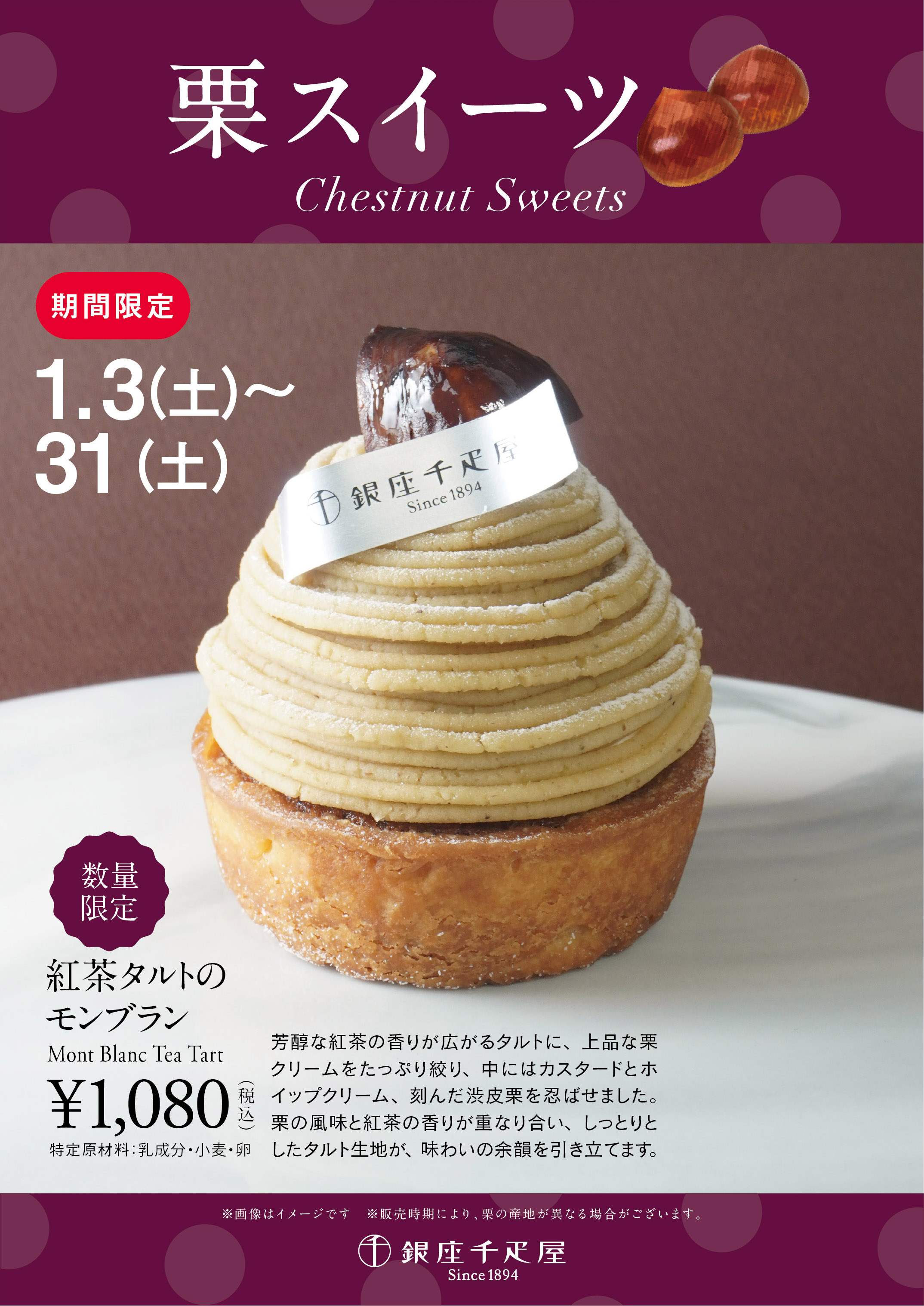 ≪銀座千疋屋 各店舗≫ “1月の栗スイーツ”登場