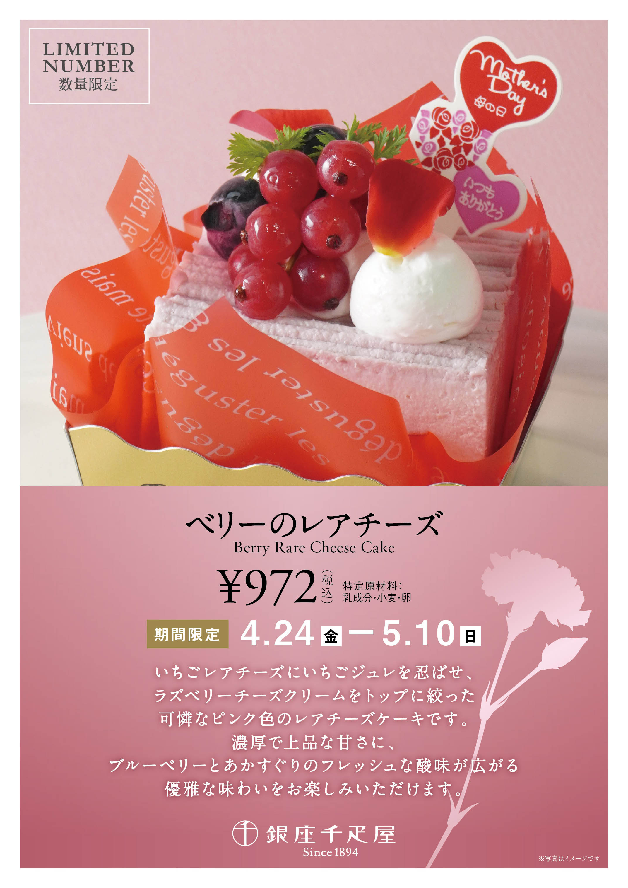 銀座千疋屋・パティスリー銀座千疋屋店舗では、2026年4月24日(金)~5月10日(日)まで「ベリーのレアチーズ」を数量限定にて発売します。